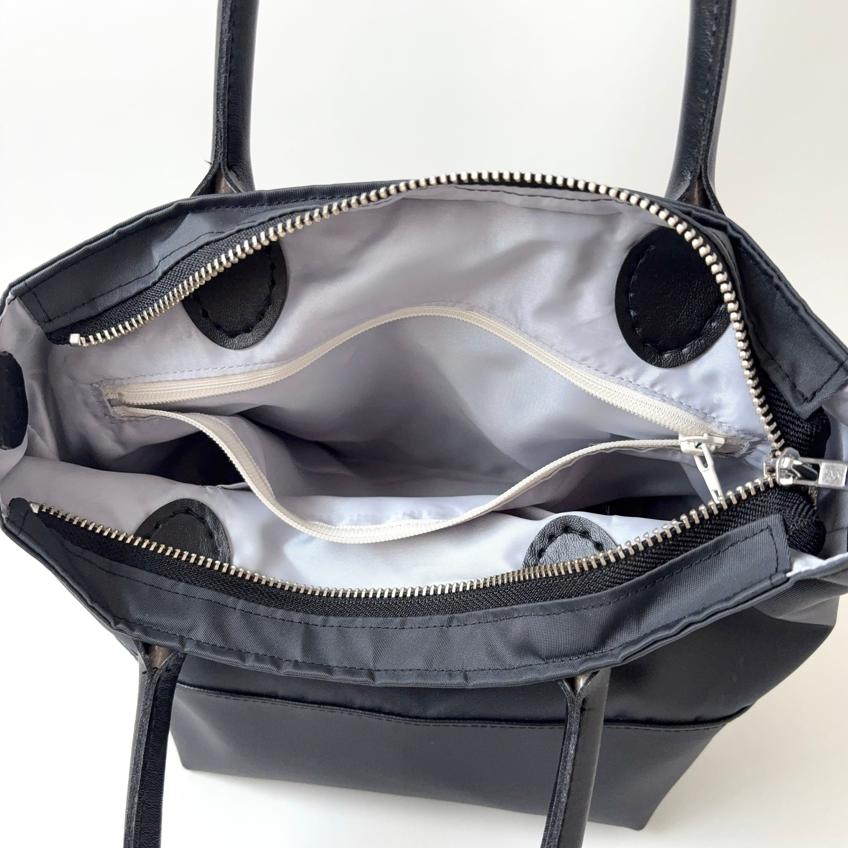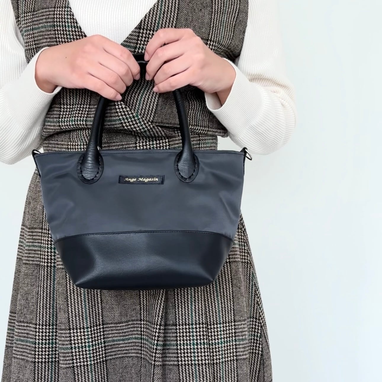 今話題の〔ナイロン×レザー生地〕の異素材を組み合わせたトートバッグ。