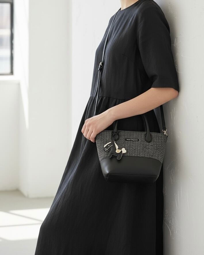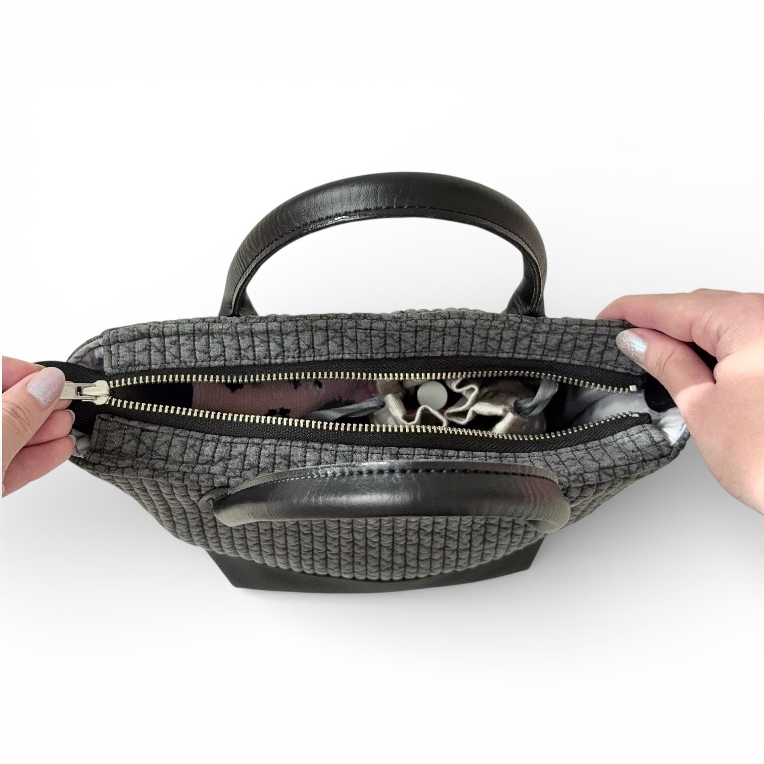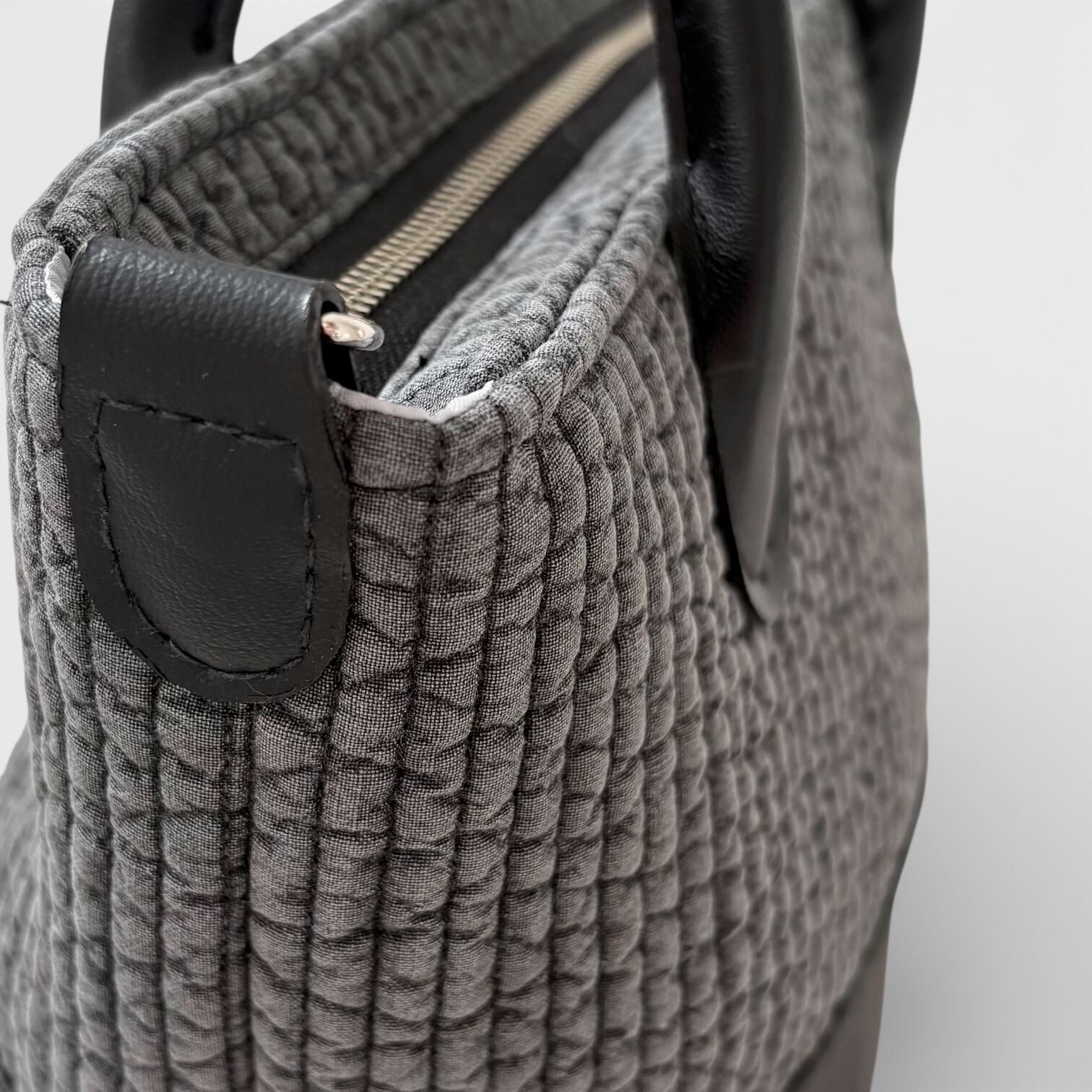 Nubi マチュリテ Sサイズ [ダークグレーヌビ×ブラックレザー] ハンドバッグ ショルダーバッグ 2way仕様 イブルキルト 黒色 灰色