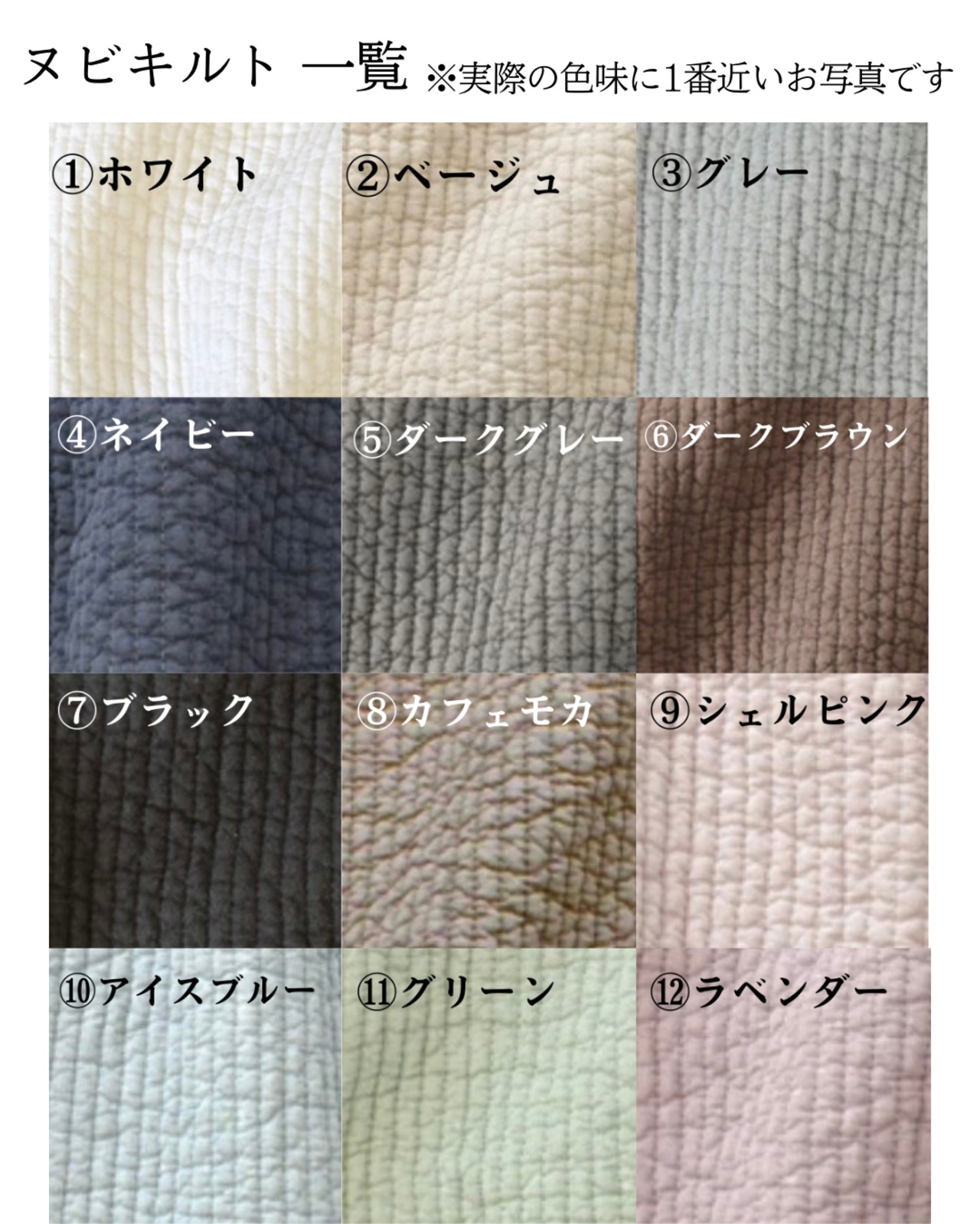 ⒈ヌビキルトの色を選択(全12色)