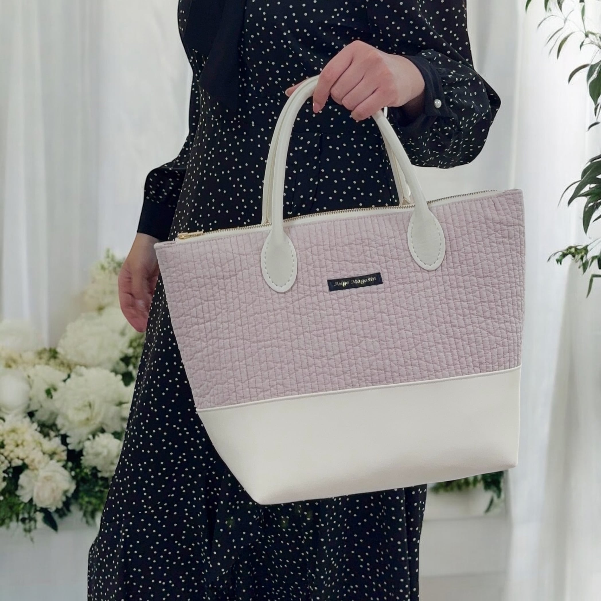 大人レディは注目の的になってしまう事もしばしば…周囲からバッグの中を見られてしまったり、財布などの貴重品が見えてしまうのは避けたい…という想いに寄り添って、バッグの口はチャック式にしました。